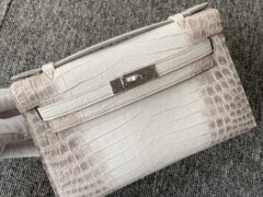 カスタムエルメスミニケリーポシェット22cmエルメスヒマラヤクロコダイルレザーミニケリーバッグシルバーバックル付き