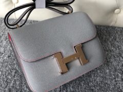 カスタムエルメスコンスタンス18CMエルメス8Uグレイシャーブルーインナーリップスティックパウダースチュワーデスバッグリップスティックパウダーラインゴールドバックル