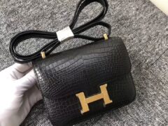 スポットエルメスバッグ公式サイトエルメスマットクロコダイルスキンコンスタンススチュワーデスバッグConstance14CMブラックゴールドバックル