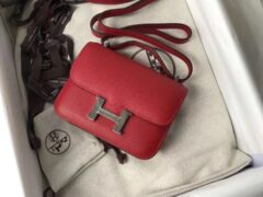 エルメスコンスタンス14CMエルメスQ5フラッグレッドオリジナルパームグレインレザーコンスタンスバッグシルバーバックル