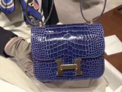 エルメスコンスタンスバッグエルメスシャイニークロコダイルレザースチュワーデスバッグニューカラーM3インクブルーシルバーバックル
