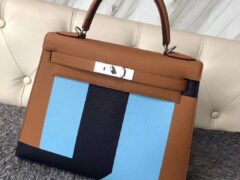 スポットエルメスケリー28CMエルメスゴールデンブラウンカラーブロックレターバッグSケリーバッグエプソムレザーシルバーバックル