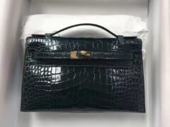 エルメスミニケリー-2エルメスミルクセーキパウダーシャイニークロコダイルレザーミニケリーバッグ2世代ディナーバッグゴールドバックル