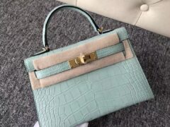 カスタマイズされたエルメスMinikelly2世代ミニケリーバッグエルメスマットクロコダイルレザークラッチ6Uミントグリーンゴールドバックル