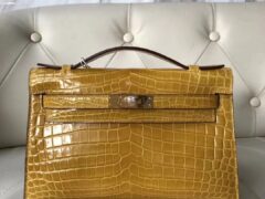 エルメスMinikelly22CMエルメス9Dアンバーイエローシャイニークロコダイルレザーミニケリーバッグゴールドバックル