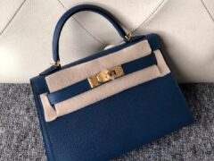 エルメスバッグ公式サイトエルメスミニケリー-21Pダックブルーパームグレイン牛革ミニケリーバッグ2世代ゴールドバックル