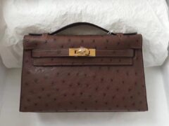 エルメスミニケリーポシェットエルメスタバコオリジナルオーストリッチレザーミニケリーバッグゴールドバックル付き