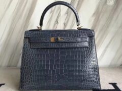 エルメスケリーバッグエルメスシャイニークロコダイルスキンケリーバッグKelly28CMN7ストームブルーゴールドバックル