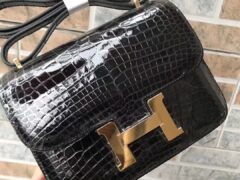 エルメスエルメススチュワーデスバッグCK89ブラックシャイニースクエアクロコダイルレザーコンスタンス18コンスタンスバッグゴールドバックル
