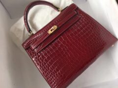 エルメスケリーバッグエルメス光沢のあるクロコダイルスキンケリーバッグKelly25CMF5ブルゴーニュワインレッドゴールドバックル