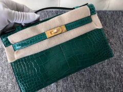 スポットエルメスミニケリーハンドバッグエルメスシャイニークロコダイルレザーミニケリーバッグ6Qエメラルドグリーンゴールドバックル