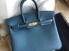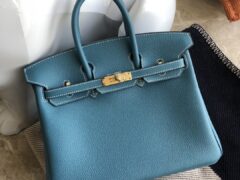 スポットエルメスバーキンバッグ25CMエルメスオリジナルトーゴレザープラチナバッグCK75デニムブルーゴールドバックル