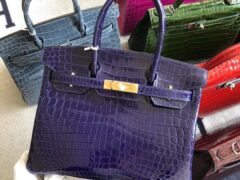 スポットエルメスBirkin30CMエルメス7T電気光学ブルー光沢クロコダイルレザープラチナバッグゴールドバックル