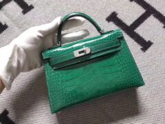 エルメスMinikelly22CMエルメス1Lサボテングリーンシャイニークロコダイルレザーミニケリーバッグシルバーバックル