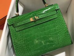 エルメスニューウィメンズバッグエルメスミニケリー2世代サボテングリーンクロコダイルスキンミニケリーバッグ