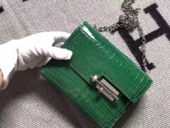 スポットエルメスコンスタンスバッグエルメスコンスタンス18CMCK67エメラルドブライトクロコダイルレザーゴールドバックル