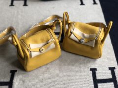 スポットエルメスミニリンディバッグエルメスミニリンディ19cm9DアンバーイエローTCレザーゴールド/シルバーバックル