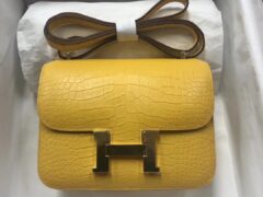 エルメススチュワーデスバッグサイズエルメスコンスタンス18CM9D琥珀色イエローマットクロコダイルレザー