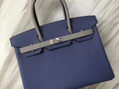 スポットエルメスカラーマッチングプラチナバッグエルメスバーキン30CM7Eブライトブルー/4Zカモメグレーパームグレイン牛革シルバーバックル