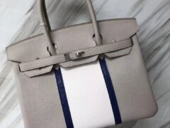 エルメスレディースバッグカスタムCK80パールグレー/ピュアホワイトカーフスキンとエレクトリックブルートカゲスキンプラチナバッグBirkin30CMシルバーバックル