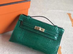 エルメスミニケリーバッグ19CMエルメスミニケリー2ジェネレーションフォレストグリーンシャイニークロコダイルレザーシルバーバックル
