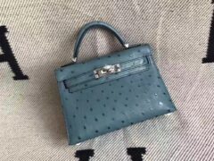 エルメスミニケリー-2コーラルブルートップオーストリッチレザーシルバーバックル