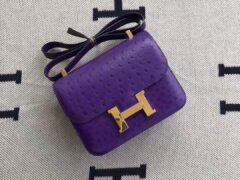 エルメスコンスタンス24cmエルメス9WドリームパープルKKオーストリッチスキンコンスタンススチュワーデスバッグゴールドバックル