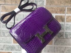 エルメスバッグ公式サイトエルメスコンスタンス18cm5Lエクストリームパープル光沢クロコダイルレザースチュワーデスバッグ