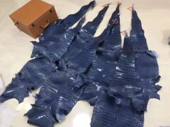 エルメスの光沢のあるオーストラリアンガルフクロコダイルレザーN7ストームブルーは、バーキンバッグとケリーバッグをカスタマイズできます