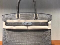 エルメスバーキン30CMエルメスC81ターコイズグレーシャイニークロコダイルレザーバーキンシルバーバックル