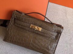 エルメスエルメスミニケリーバッグダークブラウンマットクロコダイルレザーミニケリー22cmゴールドバックル