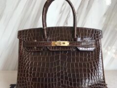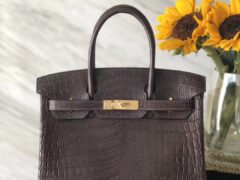 エルメスバーキン30CMチョコレートマットクロコダイルレザーゴールドバックル