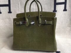 エルメスバーキン25CMエルメスV6オリーブグリーンシャイニーリザードスキンバーキンシルバーバックル