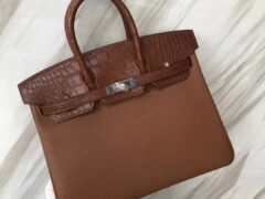 カスタマイズされたエルメスタッチシリーズプラチナバッグエルメスブラウンマットクロコダイルレザー/トーゴレザーBirkin25CMシルバーバックル
