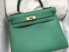 エルメスケリー28CMエルメスU4ベルベットグリーントップトーゴレザーケリーバッグゴールドバックル