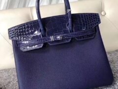 エルメスバーキンバッグカスタムエルメスバーキン25CMM3インクブルークロコダイルレザーとトーゴレザーシルバーバックル