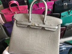 エルメスの定番色トゥルティエールグレー バーキン アリゲーターシャイニー エルメス グレー ハンドバッグ 25cm シルバー金具 HERMES Birkin 25 Tourterelleバーキン25CM