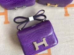 ファクトリーダイレクトエルメスエルメススチュワーデスバッグ5Lドリームパープルブライトクロコダイルレザーコンスタンス18CMシルバーバックル