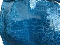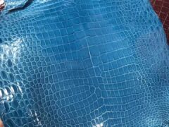 エルメスクロコダイルレザーエルメス7Wイズミールブルー光沢のあるオーストラリア湾クロコダイルレザー