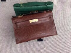 エルメスミニケリーバッグクラッチエルメスブラウンマットクロコダイルレザーミニケリー22cmゴールドバックル