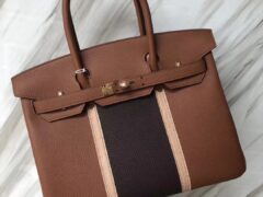 エルメスバッグ卸売エルメスオリジナルクロスグレイン牛革プラチナバッグBirkin25CMCK37ゴールデンブラウン