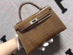 エルメスエルメスシャイニークロコダイルレザーブラウンカスタマイズ可能なミニケリー/コンスタンス18cm