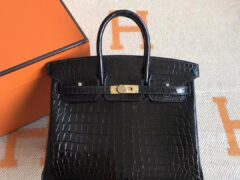 エルメスバーキンバッグエルメスCK89ブラックシャイニークロコダイルレザープラチナバッグ25CMゴールドバックル