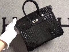 エルメスバーキンバッグエルメスブラックシャイニークロコダイルレザーバーキン25cmシルバーバックル
