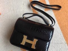 エルメスクロコダイルレザースチュワーデスバッグエルメスCK89ブラックシャイニークロコダイルレザーコンスタンス19cmゴールドバックル