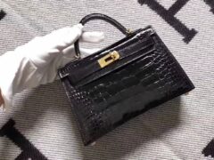 ファクトリーダイレクトエルメスエルメスブラックアリゲータースクエアクロコダイルレザーミニケリーミニケリーバッグ2世代