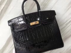 スポットエルメスバーキンレディースバッグエルメスシャイニークロコダイルレザープラチナバッグBirkin25CMck89ブラックゴールドバックル