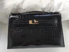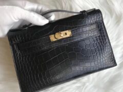 エルメスミニケリーイブニングバッグエルメスマットクロコダイルレザーミニケリーバッグCK89ブラックゴールドバックル