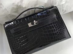 エルメスMinikelly22CMエルメスCK89ブラックシャイニークロコダイルレザーミニケリーバッグシルバーバックル