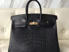 エルメスバーキン25CMブラックマットクロコダイルレザーゴールドバックル